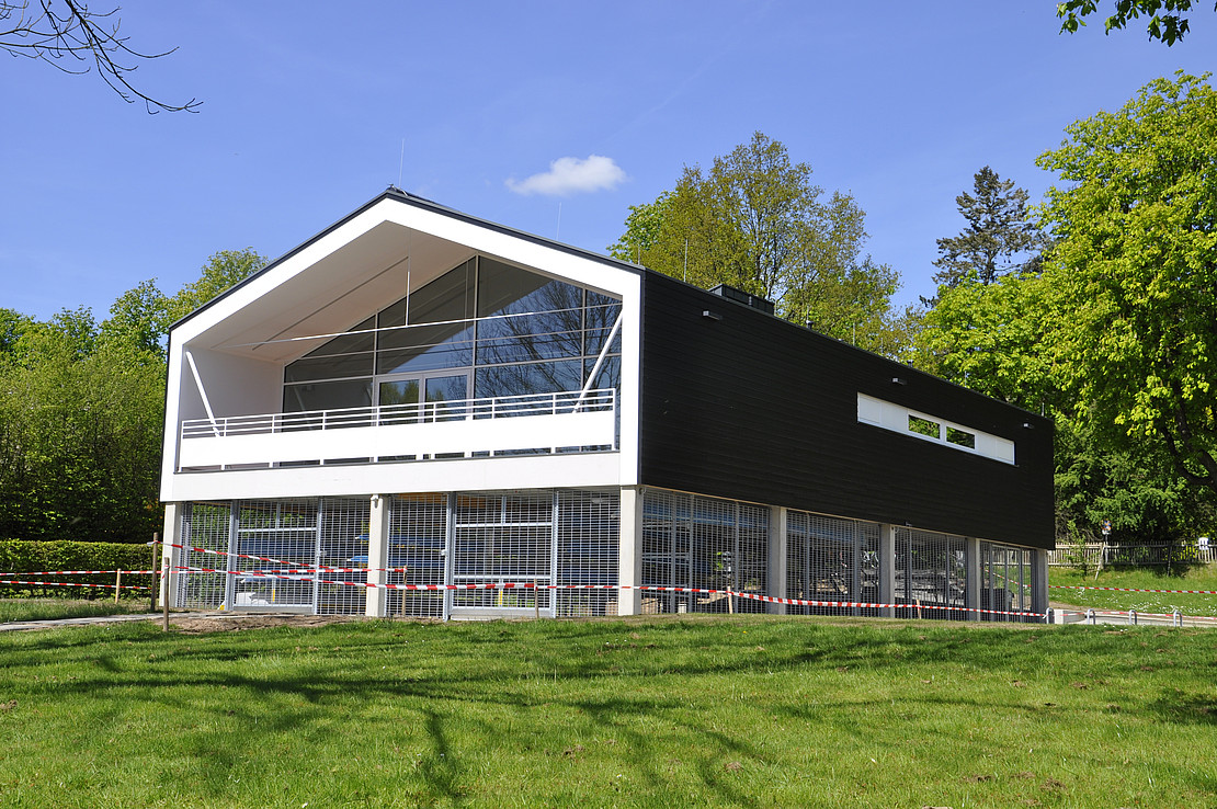 Image: University of KasselDurch den Neubau kann die Universität ihr Angebot an Wassersport-Kursen deutlich erweitern.Das neue Multifunktionsgebäude dient dem Institut für Sport und Sportwissenschaft der Universität Kassel als Bootshalle und Seminargebäude. Die Gesamtbaukosten für den Neubau betragen rund 1,25 Millionen Euro, die Nutzfläche beträgt 547 m². In der ersten Etage gibt es zwei Seminarräume, Umkleiden, Duschen, Toiletten, Lager und Küche. Hier werden zum Beispiel Vorbereitungsseminare zum Rudern, Windsurfen, Kanu-Fahren, aber auch Yoga-Kurse stattfinden. Im Erdgeschoss lagern die Boote.