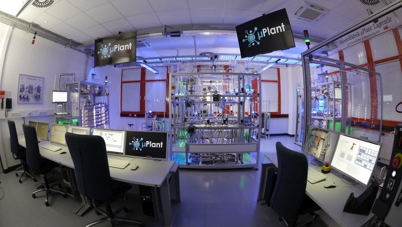 Die Modellfabrik besteht aus sechs miteinander kommunizierenden Stationen sowie mobilen Robotern und einem Leitstand, von dem aus die Anlage überwacht wird. Den Fertigungsprozess bildet die Anlage vom Zusammenfügen erster Komponenten bis zur Einlagerung des Endprodukts ab. Den Transport der Ausgangs- und Zwischenprodukte übernehmen Roboter. In ihrer Form ist die Anlage in Deutschland einzigartig: „Im Gegensatz zu Anlagen anderer Hochschulen kann unsere Modellfabrik mehr heterogene Prozesse abbilden, und die Fertigungsinseln sind untereinander flexibel verknüpfbar“, erklärt Prof. Dr. Andreas Kroll, Leiter des Fachgebiets Mess- und Regelungstechnik. Auch der Einsatz mobiler Roboter sei andernorts selten.
