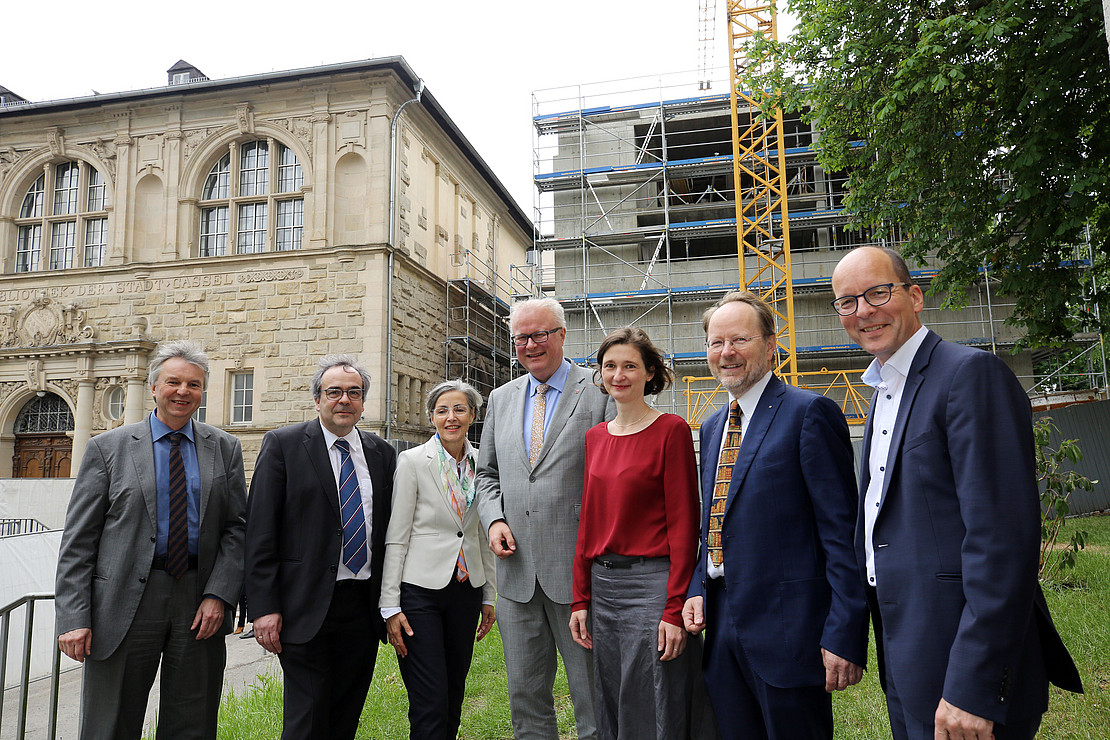 Image: Andreas Fischer.Die ersten Bauabschnitte sind nun geschafft: Einen Eindruck von den Veränderungen konnten sich die Gäste im Rahmen des heutigen Richtfestes machen, zu dem sie von Hessens Finanzminister Dr. Thomas Schäfer, Universitätspräsident Professor Dr. Reiner Finkeldey und Kassels Kulturdezernentin Susanne Völker sowie Abteilungsleiterin Irene Bauerfeind-Roßmann (Hessisches Ministerium für Wissenschaft und Kunst) begrüßt wurden.