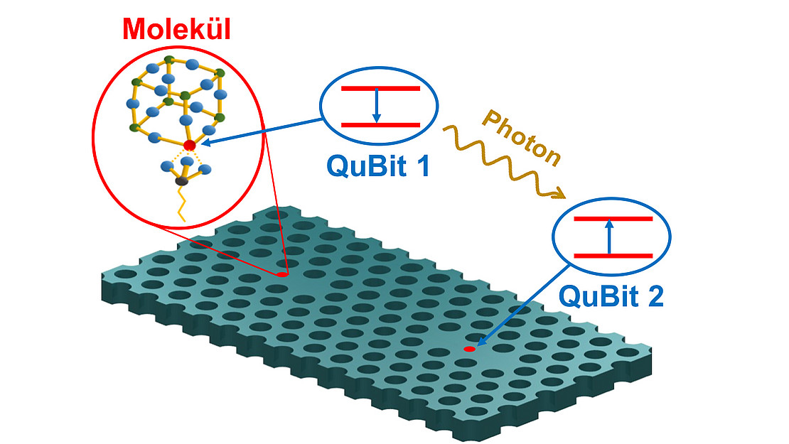 Image: University of Kassel.Das Projekt, das vom Fachgebiet Technische Physik (Prof. Dr. Johann Peter Reithmaier) am Institut für Nanostrukturtechnologie und Analytik der Universität Kassel (INA) koordiniert wird, untersucht neue Konzepte in der Quantentechnologie, bei denen speziell synthetisierte Moleküle die Basis darstellen zur Speicherung einer Quanteninformation (Quantenbit). Dazu soll eine hybride Technologieplattform auf der Basis eines Photonikchips realisiert werden, auf der einzelne Moleküle miteinander über Licht verknüpft werden – einem Elektronikchip ähnlich, bei dem aber die Leiterbahnen aus miniaturisierten Lichtwellenleitern bestehen und die Speicherzellen aus einzelnen Molekülen. Dies wäre eine Basis für skalierbare Quantenprozessoren, die konventionellen binären Rechnersystemen weit überlegen wären.
