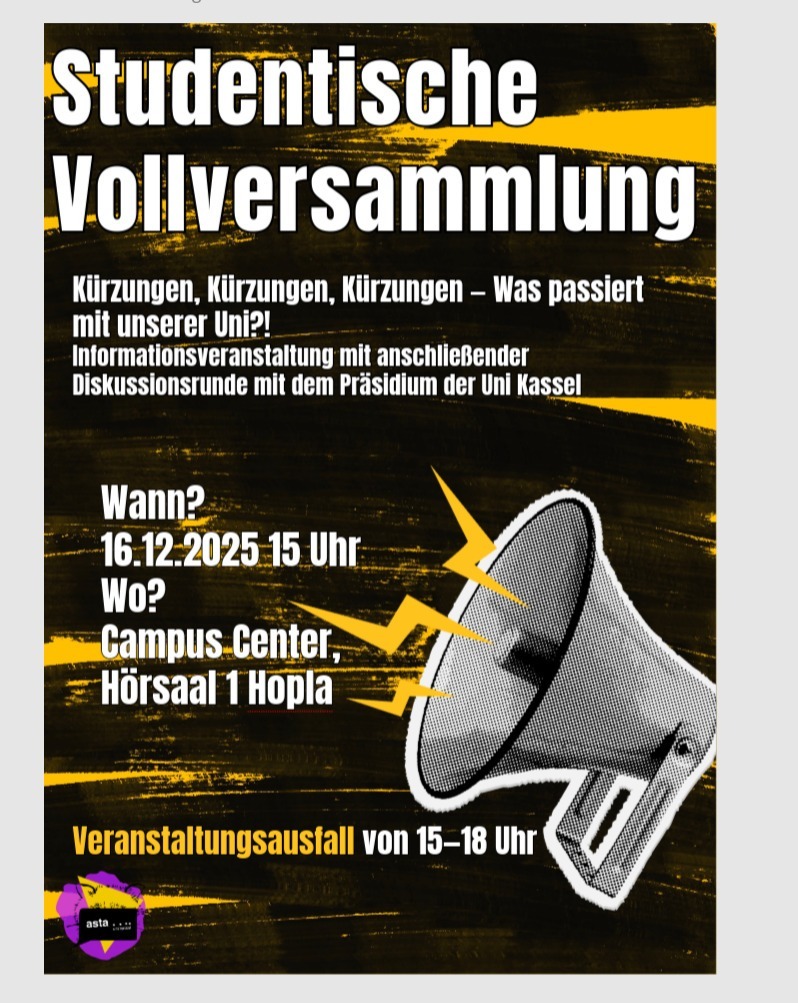 A university-wide general assembly (VV) of students is convened when particularly important and urgent matters need to be discussed. Potential participants are all students.