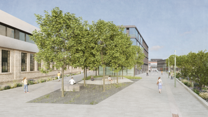Im Jahr 2026 beginnen auf dem Campus Holländischen Platz zwei Baumaßnahmen mit 10 Einzelmaßnahmen zur Entsiegelung und Begrünung, zur Konversion von Flächen sowie eine Baumnachpflanzung.