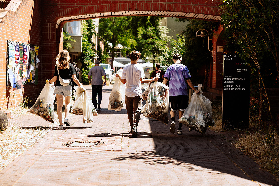 Im Rahmen einer Müllsammelaktion auf dem Campus hat das Green Office in Kooperation mit dem Hochschulsport, dem FG Ressourcenmanagement und Abfalltechnik des FB 14 sowie den Initiativen Captain Paul Watson Foundation und wirmachendasjetzteinfach am 30.06. ordentlich aufgeräumt - mit großem Erfolg und Schrecken zugleich: In knapp anderthalb Stunden wurden 51 Kilogramm Abfall auf dem Campus gesammelt.