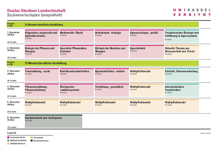 Das duale Studium ist eine Investition, die es ermöglicht später in der praktischen Landwirtschaft oder nah an der Praxis zu arbeiten. Außerdem kann die Gesamtausbildungszeit (mindestens zwei Jahre Lehrzeit, drei Jahre Bachelorstudium) auf ca. viereinhalb Jahre verkürzt werden. Es handelt sich um eine Kooperation des Fachbereichs Ökologische Agrarwissenschaften der Universität Kassel mit dem Landesbetrieb Landwirtschaft Hessen.