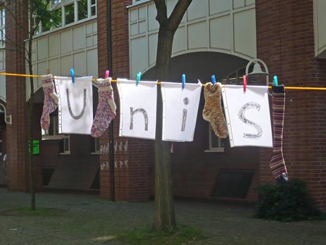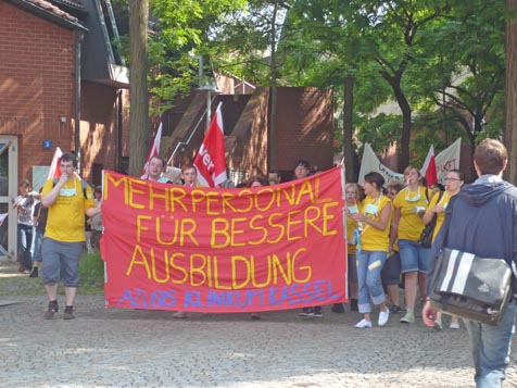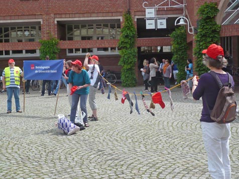 In der Woche vom 7. bis 11. Juni 2010 fanden zahlreiche Aktionen zum bundesweiten Bildungsstreik auch an unserer Hochschule statt. Die ver.di-Betriebsgruppe beteiligte sich mit einer "Aktiven Mittagspause" am Holländischen Platz an dieser Protestwoche und verteilte das Flugblatt zur Aktion Bildungsstreik.